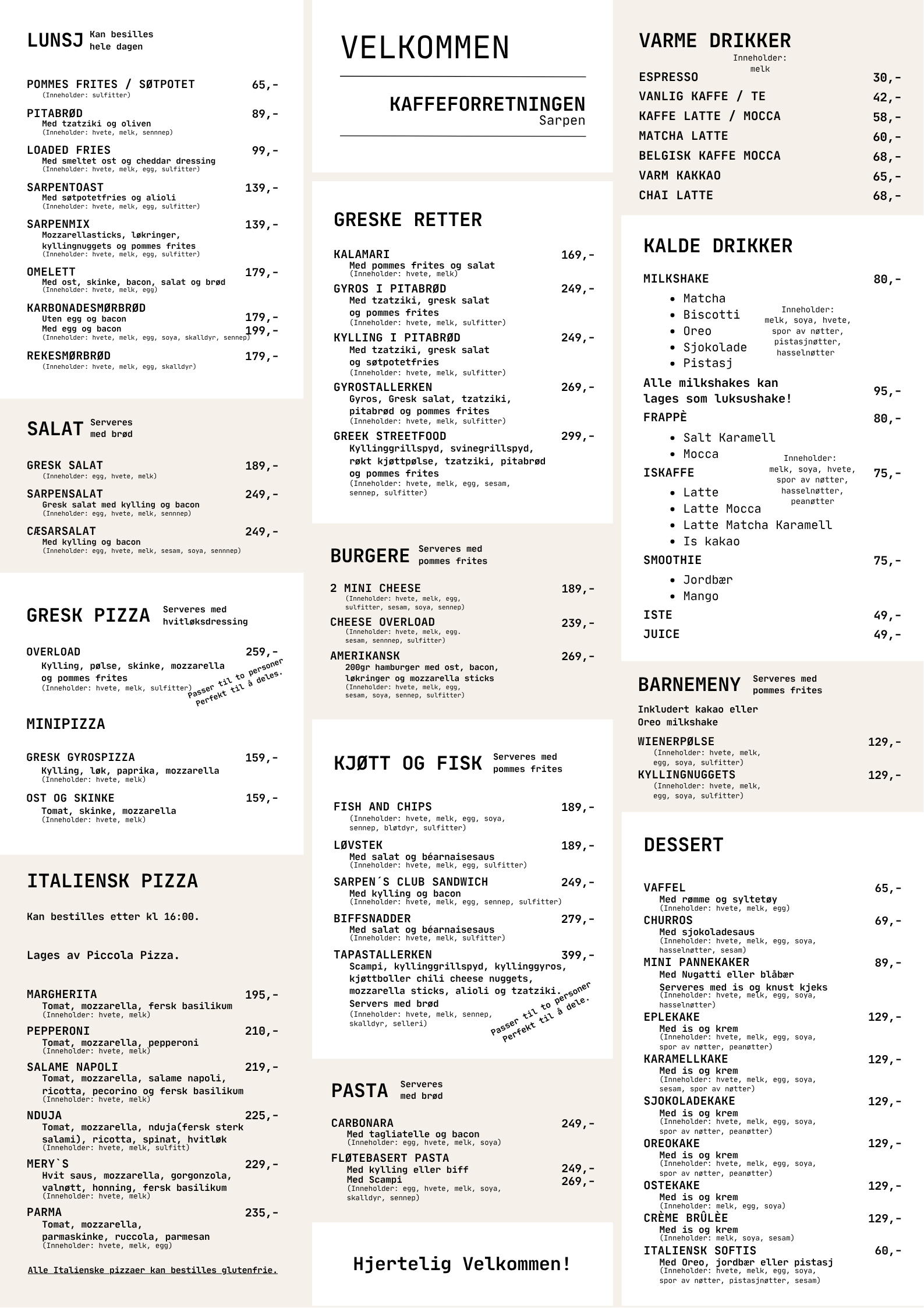 Vi jobber for tiden med ny nettside men ta gjerne en titt på vår smakfulle meny og ta turen innom for en matbit eller noe godt å drikke.