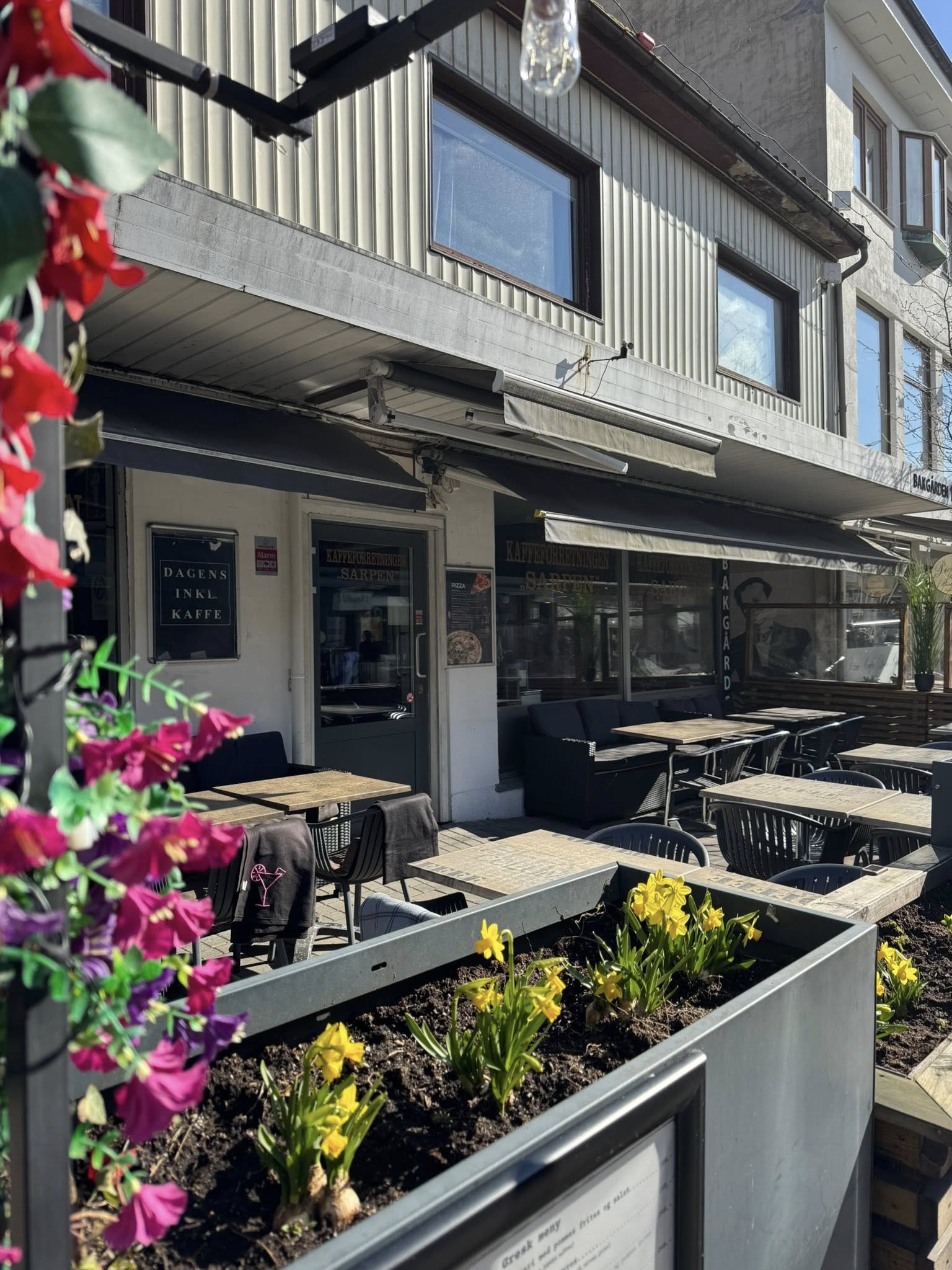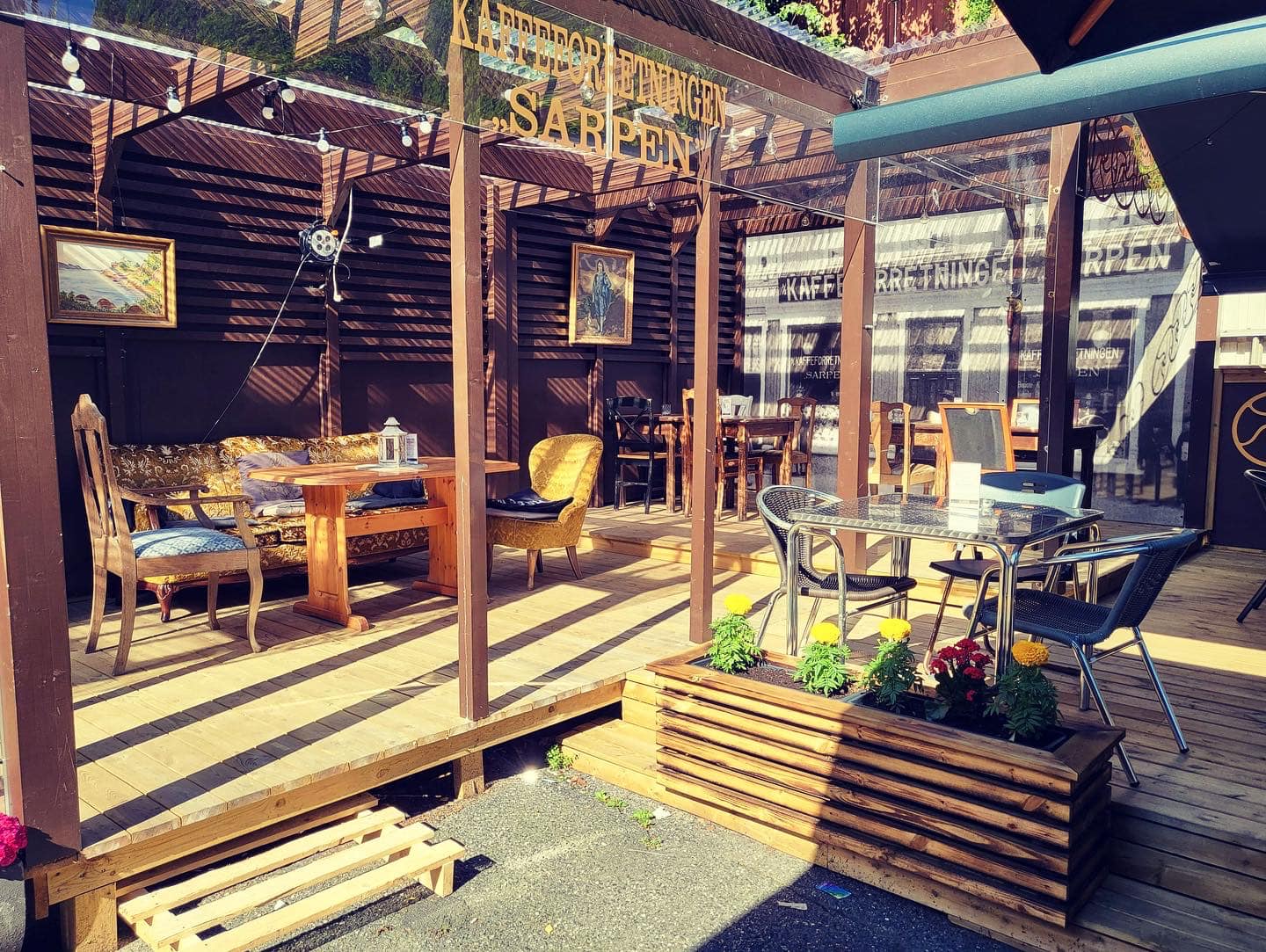På vår uteservering sitter du midt i smørøyet i Sarpsborg.
